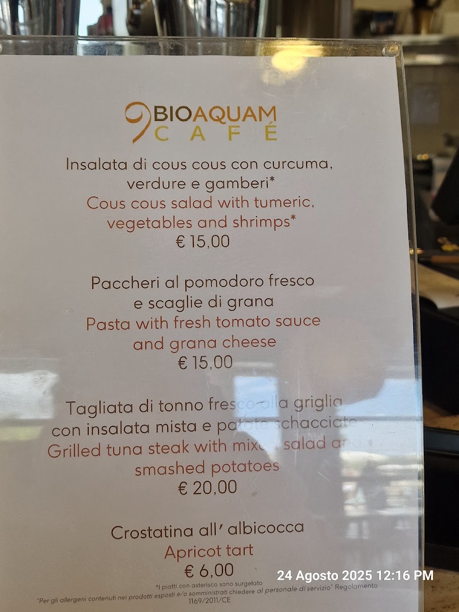 Stepping into Bioaquam Café, you're welcomed by the inviting aroma of freshly brewed coffee and baked goods that beckon you from the display. The menu is a well-curated selection of wholesome dishes that are both delicious and satisfying, ensuring there's something for everyone. From hearty pasta with luscious pesto to savory roasted pork, each plate is designed to tantalize your taste buds. Customer reviews speak highly of the quality, with Maria Teresa Pedrali noting the impressive variety of both sweet and savory items that are irresistibly inviting.
